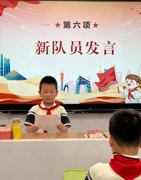 在大队长的带领下,新队员们举起右拳,在队旗下庄严宣誓:“我是中国少年先锋队队员……”铿锵有力的誓言,是他们对自己、对组织许下的郑重承诺。
