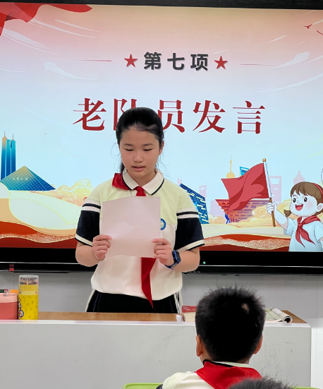 新队员代表在发言中表达了成为一名少先队员的无上光荣,并表示将以大哥哥大姐姐为榜样,勤奋学习,关心集体,努力为红领巾增光添彩。老队员代表的发言则充满了对新队员的欢迎与鼓励,并分享了作为少先队员的成长与收获。