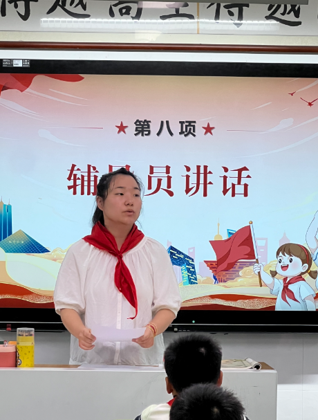 大队辅导员在讲话中向新队员们表示了热烈的祝贺,并提出了殷切希望,鼓励他们以潘汉年爷爷为榜样,从小树立远大理想,培养优良品德,努力学习知识,锻炼强健体魄,争做新时代的好队员。