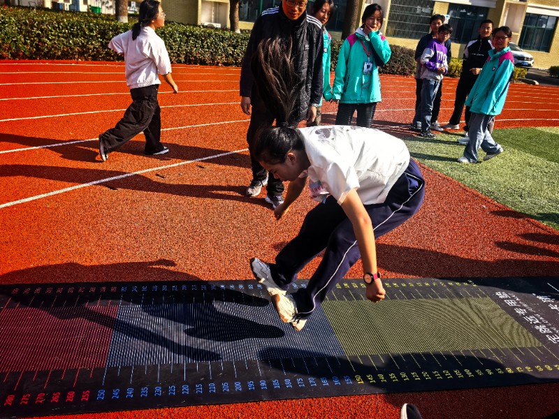 立定跳远场地,运动员们凝神屏息,摆臂、蹬地、腾空、落地。沙坑中不断刷新的脚印,是他们不断突破自我、挑战极限的最好证明。