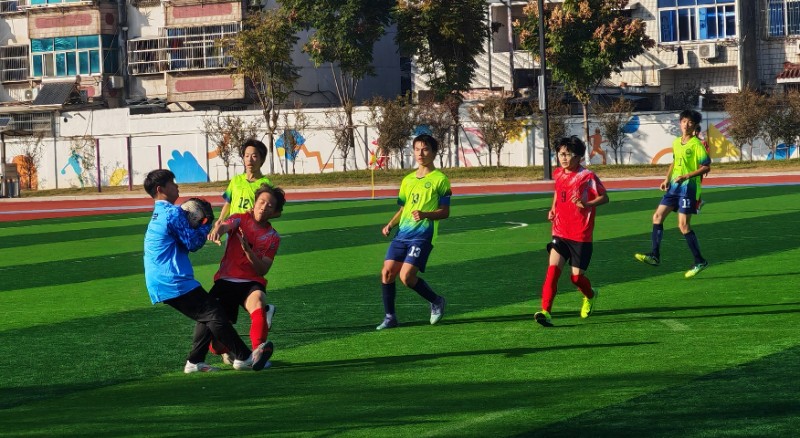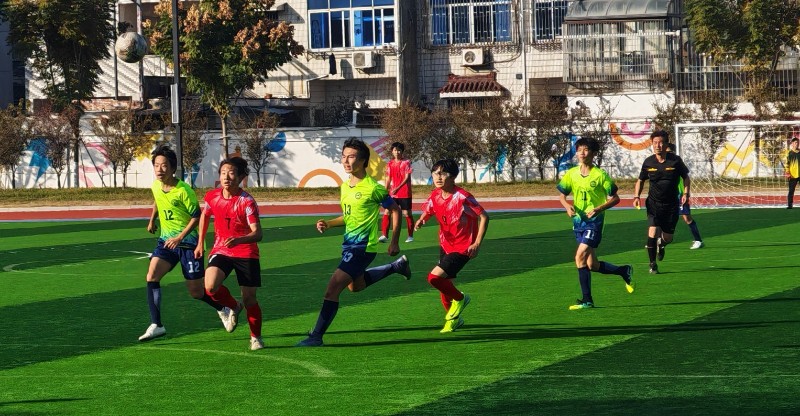 11月24日在高塍中学主场作战时,高塍中学足球小将们凭借主场优势,迅速进入比赛状态,攻防两端配合默契。队员们在场上奋勇拼搏,凭借精准的传球和犀利的进攻,多次创造破门良机,最终以2:1的比分拿下首回合胜利,为晋级奠定了坚实基础。