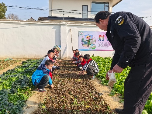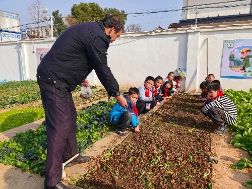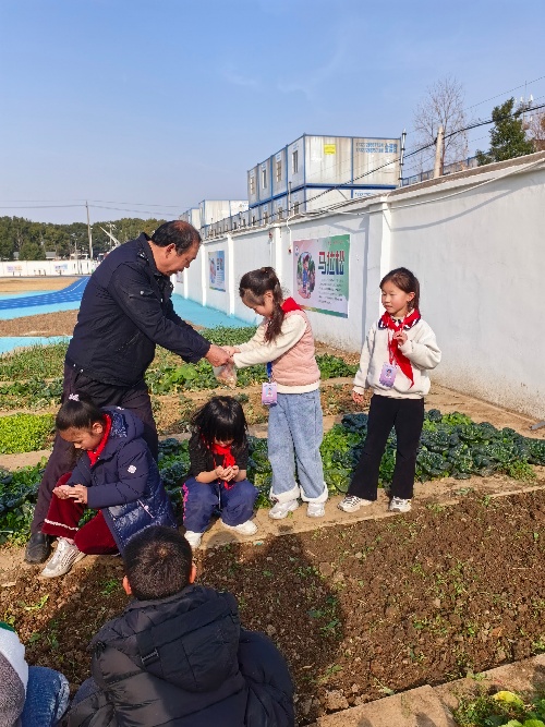 “小铲子要轻轻插进土里,种子埋太深就长不出来啦!”还记得项目初期,二年级的同学们在门卫王师傅的耐心指导下,小心翼翼地在劳动基地的专属地块里播下蔬菜种子。小班化的教学模式让每位同学都能获得王师傅一对一的指导,大家围在菜地边,认真聆听播种技巧,亲手完成播种动作,眼神里满是对生长的期待。