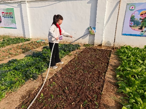 此后的每周,劳动基地都能看到同学们忙碌的身影:有的提着水管给幼苗浇水,有的蹲在地里仔细拔除杂草,遇到不懂的问题就主动向老师或王师傅请教。小班化的分组模式让每位同学都能充分参与劳动,在实践中学会了分工协作,也慢慢懂得了“一分耕耘,一分收获”的道理。