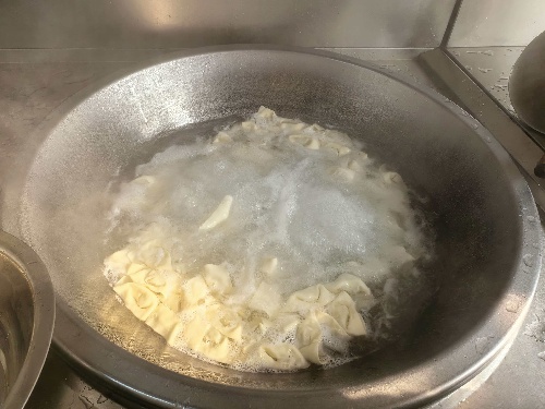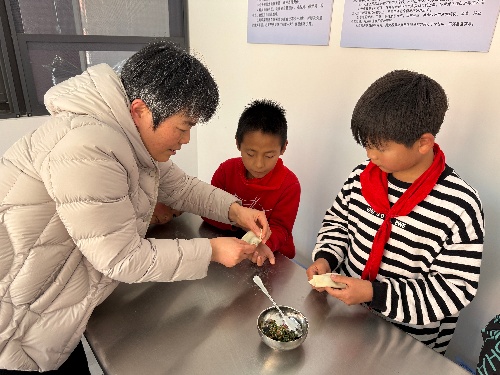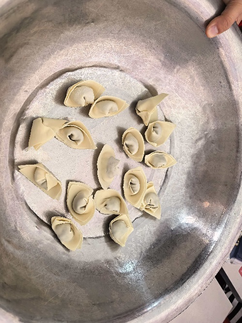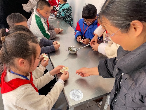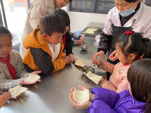 12月30日,最令人期待的包馄饨环节如期而至。食堂里,老师们早已准备好馄饨皮、馅料等食材,耐心地向同学们演示包馄饨的步骤:如何放馅料、怎样对折、如何捏紧边角。小班化的优势在此刻充分显现,老师们能够兼顾到每位同学的学习情况,对动作不规范的同学及时进行纠正和指导。同学们学得有模有样,有的认真模仿老师的动作,有的和小伙伴互相交流技巧,食堂里充满了欢声笑语。不一会儿,一个个形态各异的馄饨就摆满了餐盘。