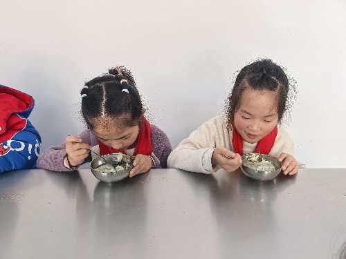 当热气腾腾的馄饨端上桌时,同学们迫不及待地品尝起自己的劳动成果,脸上洋溢着自豪与满足。“这是我第一次包馄饨,虽然不好看,但吃起来特别香!”一位同学开心地说道。