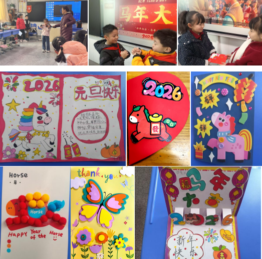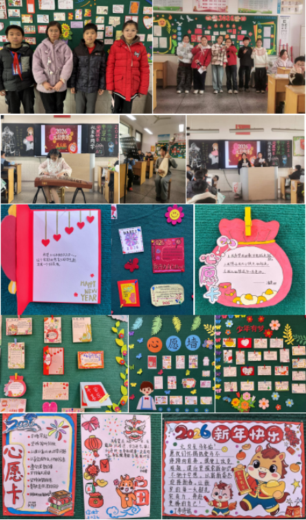 五、六年级的“新年愿望墙”充满希望。同学们精心制作心愿卡,用画笔与文字写下对自己、家人和班级的新年期许。
